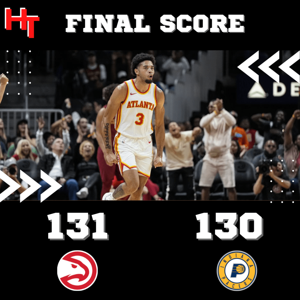 ATLANTA — The Atlanta Hawks stun the Indiana Pacers 131-130, walking off with a last-second 3-pointer by Seth Lundy.